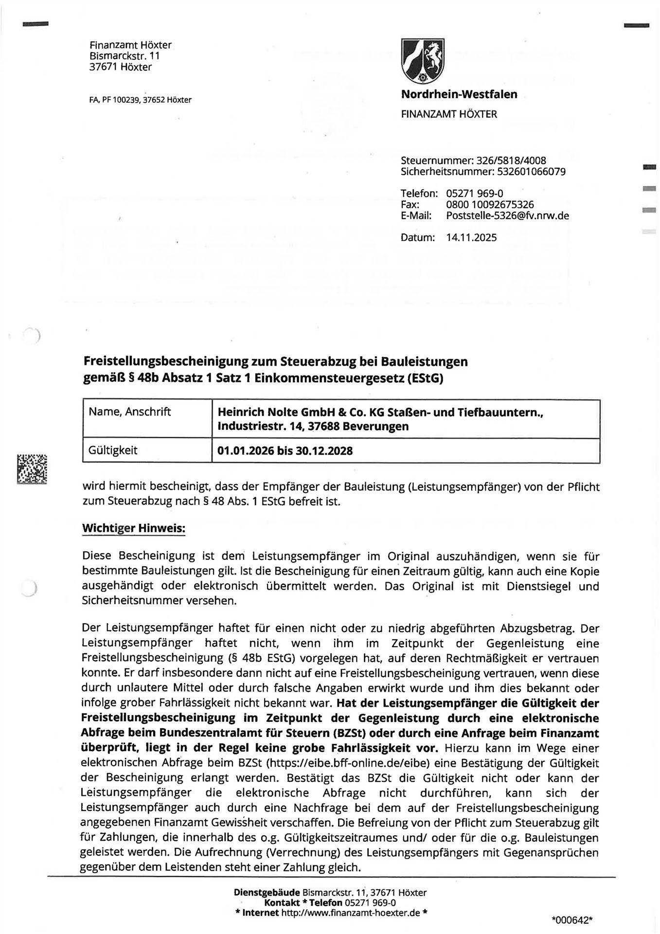 Die Heinrich Nolte GmbH & Co. KG baut seit mehr als 68 Jahren auf ein erfahrenes und motiviertes Team aus Facharbeitern, Ingenieuren, Vermessungstechnikern und vielen weiteren gut ausgebildeten Mitarbeitern im Netzwerk des Unternehmens.