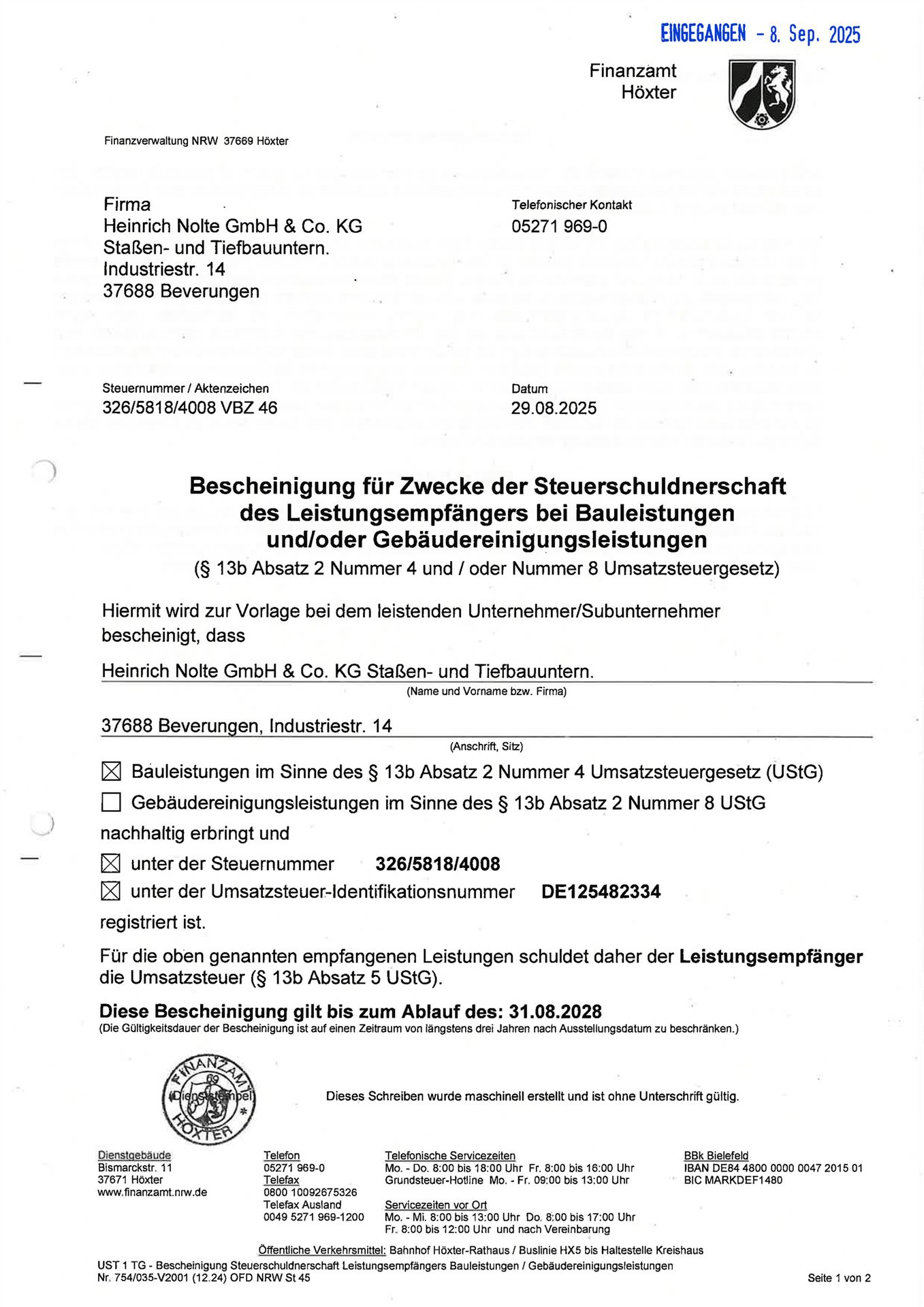 Heinrich Nolte GmbH & Co. KG - Industriestraße 14 - 37688 Beverungen - 05273-36213 - info@heinrichnolte.de - Datenschutz - Impressum