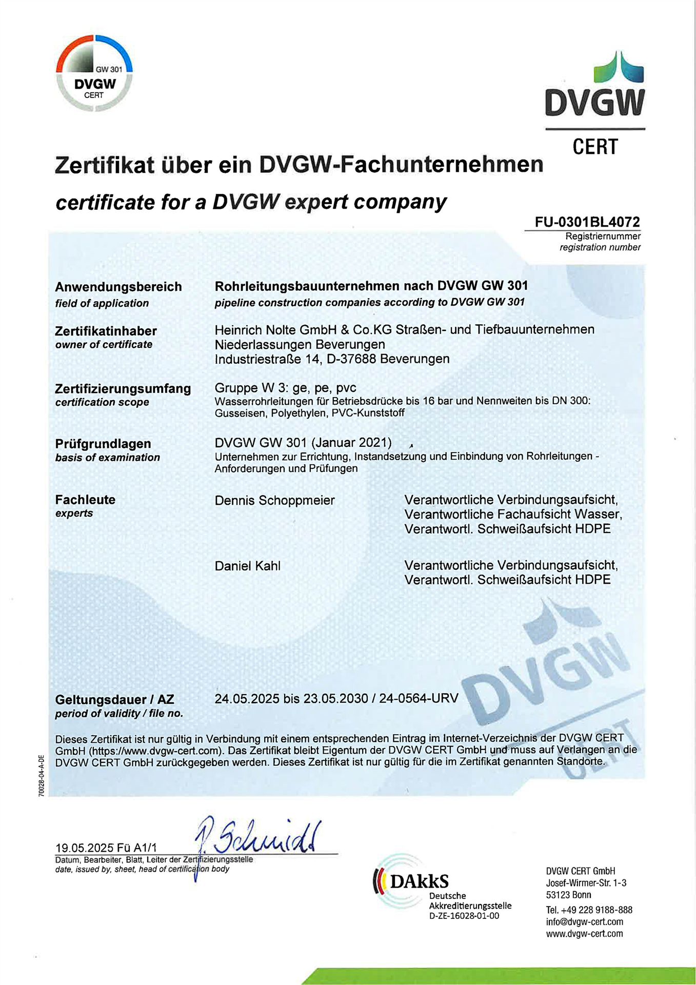 Die Heinrich Nolte GmbH & Co. KG baut seit mehr als 68 Jahren auf ein erfahrenes und motiviertes Team aus Facharbeitern, Ingenieuren, Vermessungstechnikern und vielen weiteren gut ausgebildeten Mitarbeitern im Netzwerk des Unternehmens.